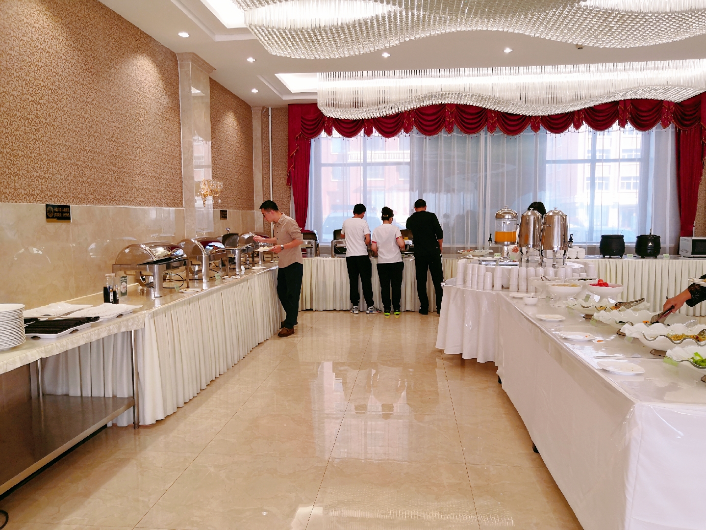 🍲[早餐],含在房费内,早上7点开始9点结束,门口服务人员客气的迎宾,收取早餐卷,都是自助餐式餐饮,食材也较之新鲜,每道菜看着快完了就会来填满!菜品丰富,从稀饭牛奶到面包熟菜,多种口味菜系满足不同年龄层次或者口味的人群,每桌配有卫生抽纸,很贴心了,非常舒适!早餐厅都是大圆桌,看着主席台的打造想必晚上还用于晚宴等用途,所以足够敞亮,卫生打扫的也干净,吃起来也放心!#献礼新中国成立70周年#