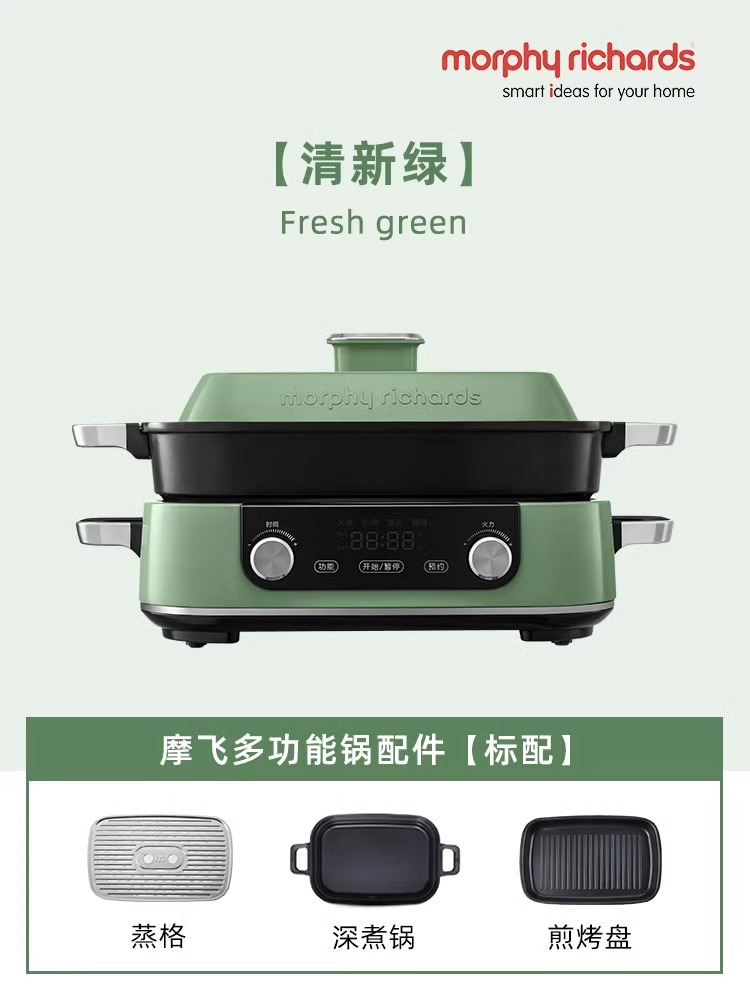 品牌: MORPHY RICHARDS/摩飞电器加热方式: 加热管加热食物接触材质: 不粘锅涂层是否可替换烤盘: 是烤盘材质: 压铸铝