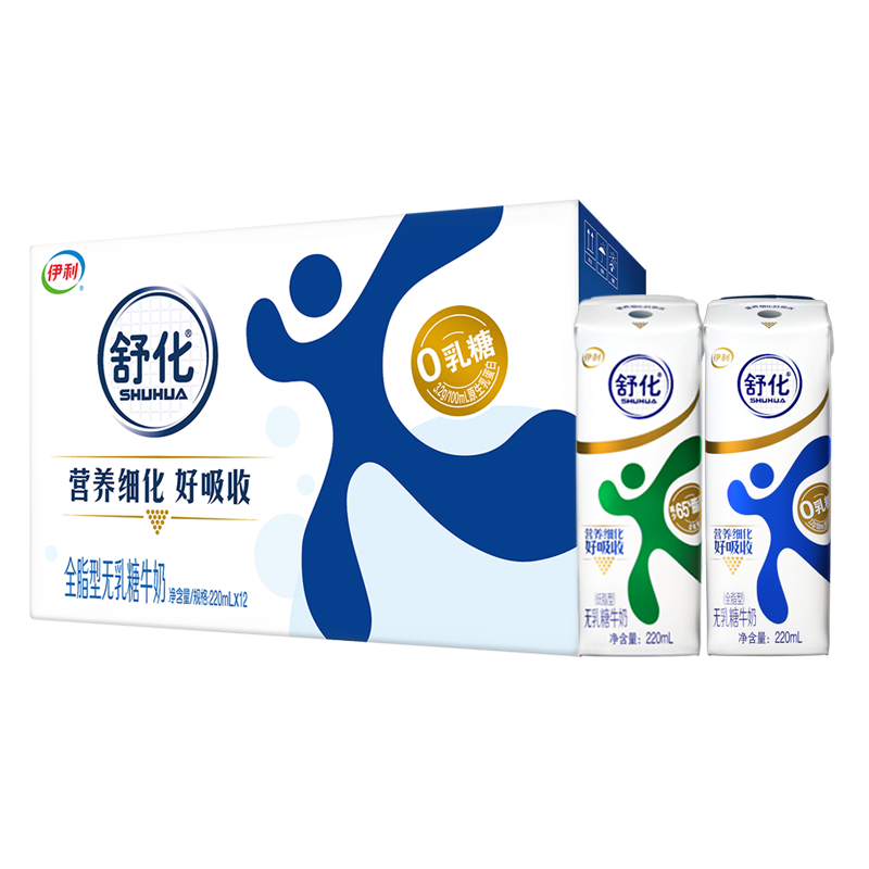 【途牛严选】伊利舒化无乳糖牛奶全脂 低脂 高钙型奶220ml*12盒整箱牛奶包邮