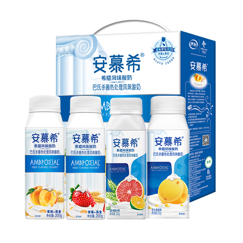 【途牛严选】伊利安慕希黄桃燕麦草莓青桔葡萄柚青稞芝士波波球清甜芒果燕麦酸奶200g*10瓶整箱