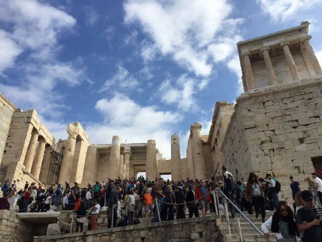 卫城山体的东南北三个方向都是陡峭的断崖,参观者只能从山体的西侧拾阶而上。