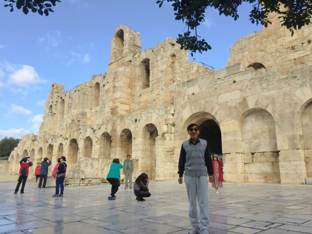 东侧是酒神剧场,最早是向酒神祈祷的地方。戴奥尼索斯是希腊神话中的酒神,古代希腊人信奉的葡萄酒之神,他不仅握有葡萄酒醉人的力量,还以布施欢乐与慈爱在当时成为极有感召力的神,他推动了古代社会的文明并确立了法则,维护着世界的和平。