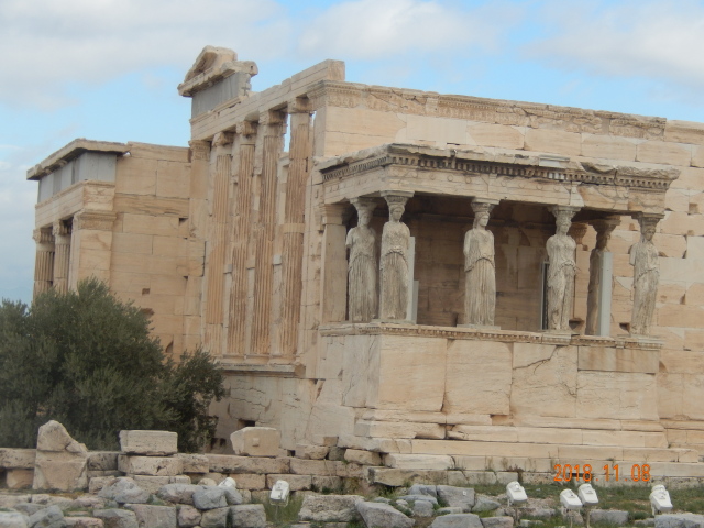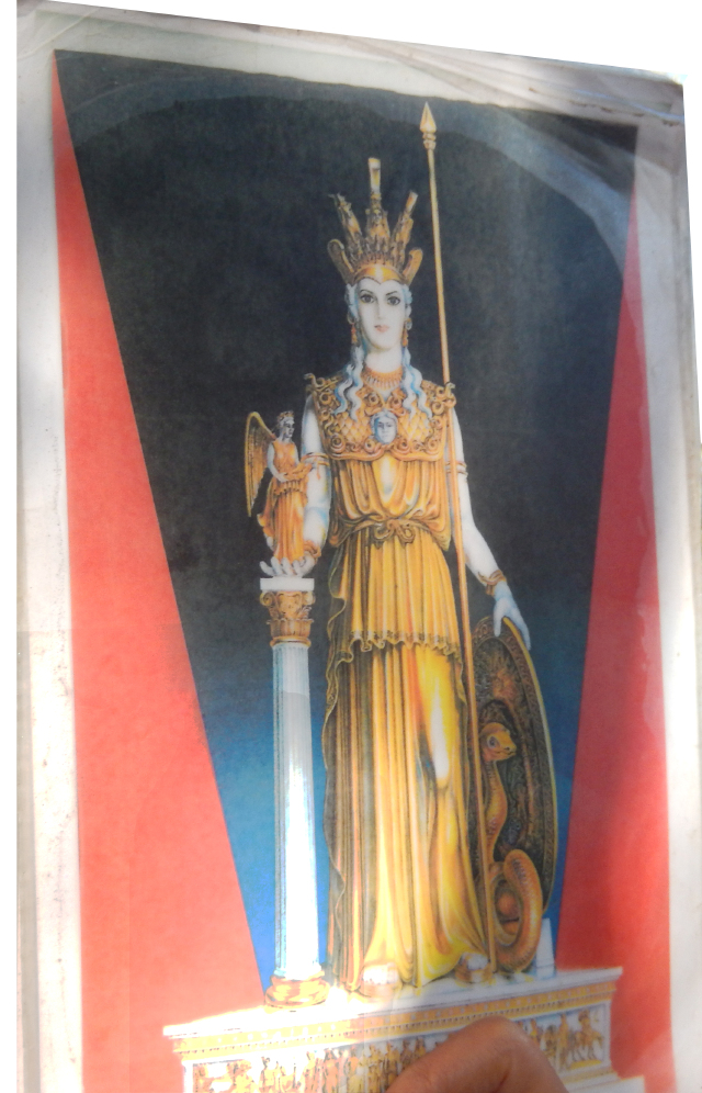 在古希腊的神话传说中,雅典娜出生后把纺织、雕刻、制作陶器等工艺技术传授给了人类,成为战争、智慧、文明和工艺女神以及雅典的城市保护神。卫城的帕特侬神庙,全称为“雅典娜帕特侬神庙”,被赞誉为雅典人崇高精神的集中表现、古希腊建筑艺术的丰碑,世界建筑史上的一座丰碑、现存最重要的古希腊时期的建筑物。这座神庙的基座全部是大理石材料,基座的上面建有三层大理石台阶,台阶的上面是列柱。神庙的南侧的17根石柱在整个廊柱,破损严重。