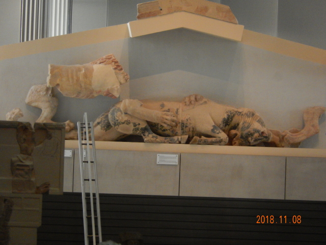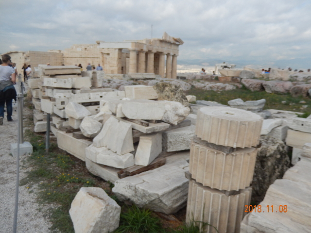 帕特侬神庙下面的草地上,堆放着长达数十米各种规格的的大理石块、立柱、柱础等。