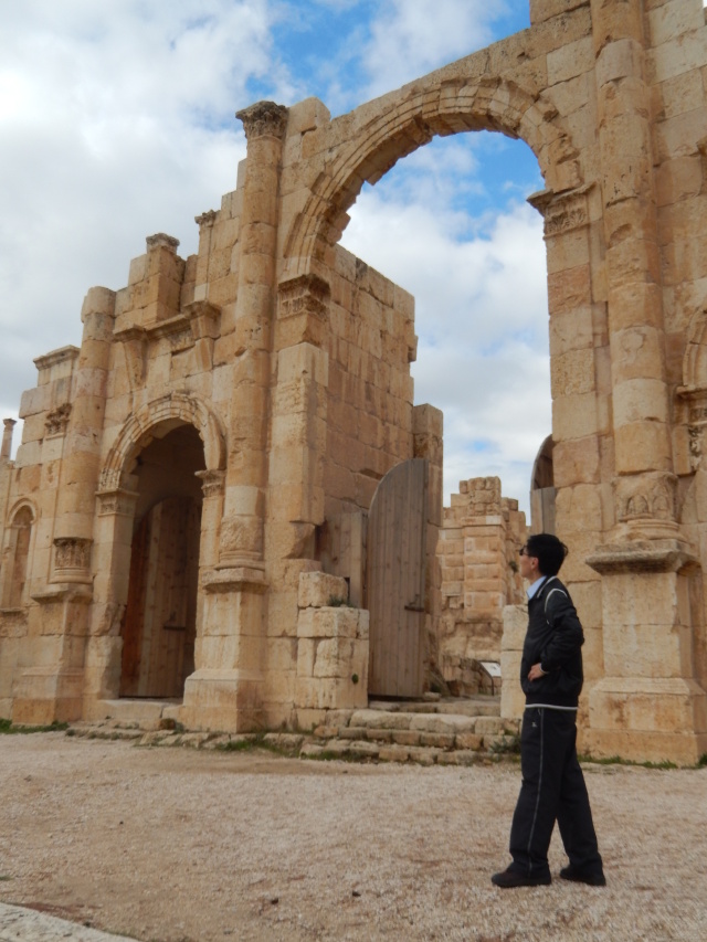 哈德良凯旋门,为迎接罗马帝国哈德良皇帝来访,杰拉什人专门在城市最南端兴建了这座雄伟的凯旋门,是杰拉什古城最庞大的建筑。