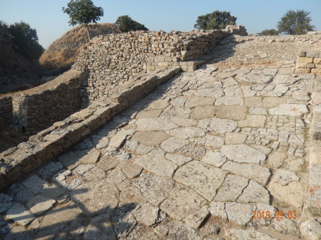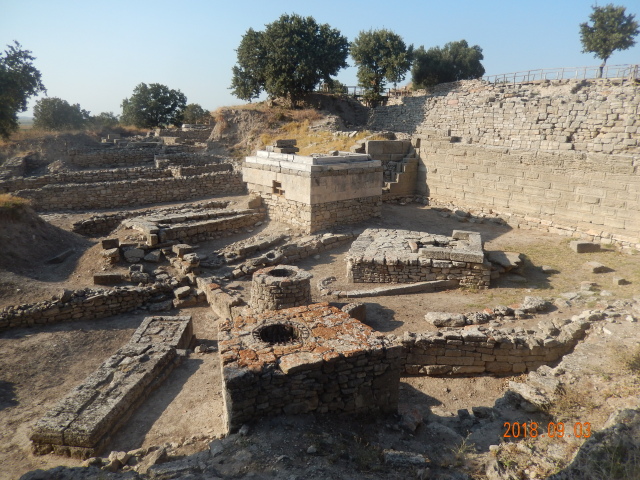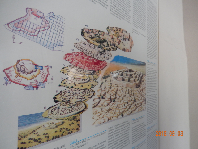 特洛伊古城和以佛所古城不同,沉睡了5000年的历史遗迹,现在只留下了几个城墙而已,特洛伊古迹保留了不同年代的特洛伊城貌,按时代分为九层,也就是经过九次修建。一二层是公元前的,用麦秸和牛粪做的砖;八九层白色大理石是罗马时期的。