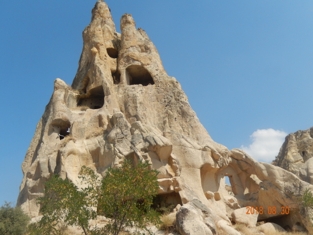3、乌其萨天然奇石景观即城堡区,就是一座全是洞穴的山头,整座山是一片奇石景观。这座山头被开凿为高达21层的城堡,也可以称作兵营,驻扎过东罗马帝国征战的将士。