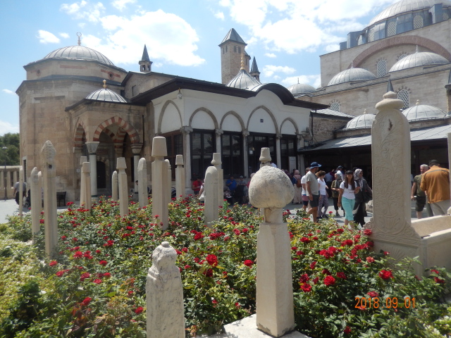 一进去是一个大花园,这个花园是当时国王阿拉丁的私人玫瑰花园,后来给了梅夫拉那,他在里面开了伊斯兰学校。