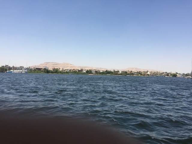 对岸就是帝王谷、哈其素女王庙等,可惜团员中再无人愿意前往只好隔河相望。(埃及历史上最重要的女王哈其素,她的历史地位犹如中国的武则天但要早两千多年。哈其素是第18王朝法老的女儿,她统治仅15年,治国有方,不惜长期扮为男相,经济发达,太平盛世。)