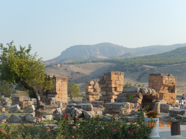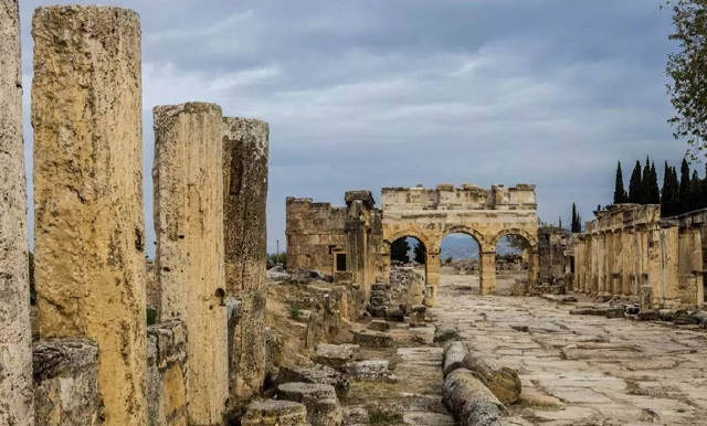 公元395年,希耶拉波利斯又被拜占庭帝国统治,成为贵族、达官、富商等安享晚年之处,辉煌了1,500年,直到1334年的大地震,摧毁了古城建筑,活着的人逃离了,留下的只有这些残垣断壁和坟冢石棺了。可谓因大自然赐予温泉而建造、发展而辉煌;又因大地震使“白色浪漫”之城夷为遗址。成也自然毁也自然,万物兴衰皆自然!