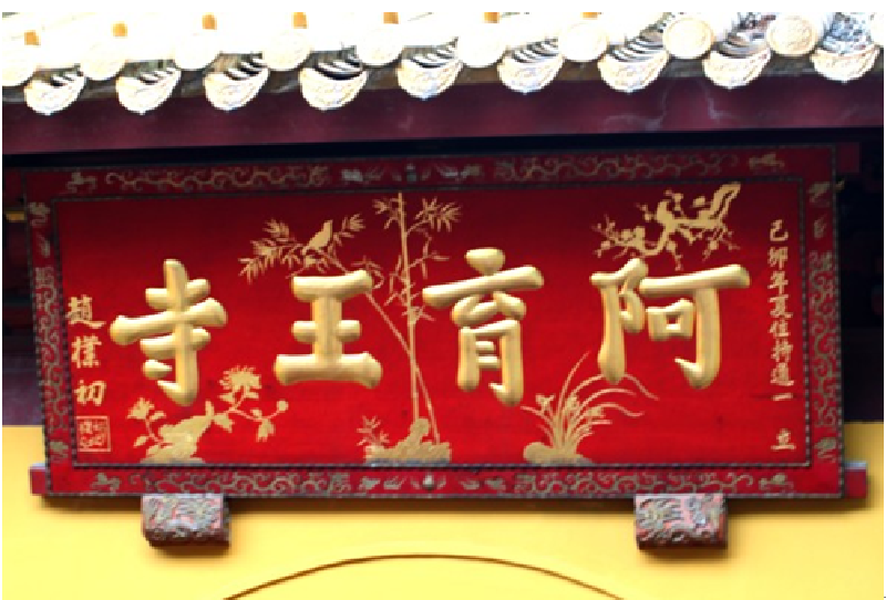 阿育王寺作为从元代到清朝的古建筑,保留着很多珍贵文物。唐范、宋朝的苏轼、张九成、宋高宗、宋孝宗还有乾隆皇帝等名人都有作品再次。后三者的御书“佛顶光明之塔”“妙胜之殿”和“觉行俱圆”匾额至今仍保存在寺内。