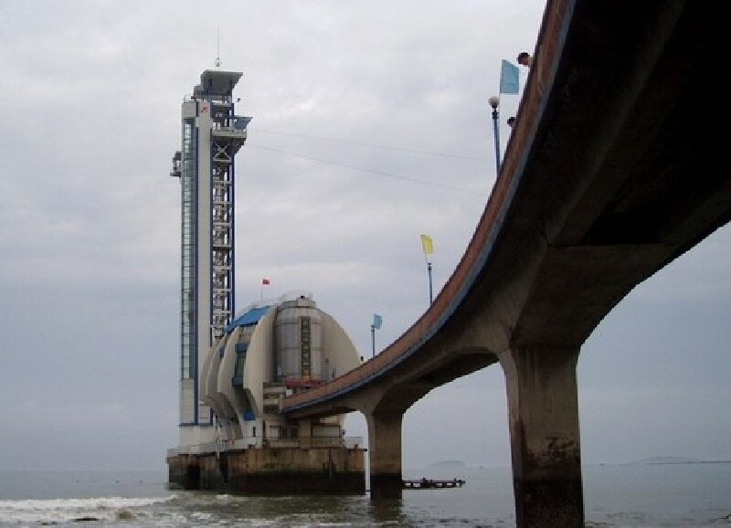 高度的桥梁、塔顶、高楼、吊车甚至热气球上,把一端固定的一根长长的橡皮条绑在踝关节处然后两臂伸开,双腿并拢,头朝下跳下去,体验身体自由落体的惊险刺激的感觉,然后在接近地面的时候被橡皮绳拉回,直至最后弹性消失。在我国,北京、上海、广州等地都可以玩蹦极,而大连星海公园是少有的可以玩海上蹦极的地方。大连星海公园的海上蹦极是自新西兰引进,据说是世界上最高的海上蹦极。跳台高55米,蹦极跳的支架上附设一座从美国引进的世界最高的液压观光电梯(39米),从电梯里可以欣赏蹦极跳的精彩过程。海面上空有一条长长的索道,据说是世界上跨度最长的跨海索道,长度为510米,从加拿大引进。不断有人在索道上滑过,吊在半空进行空中飞越,犹如武侠电影里飞来飞去的大侠一般。