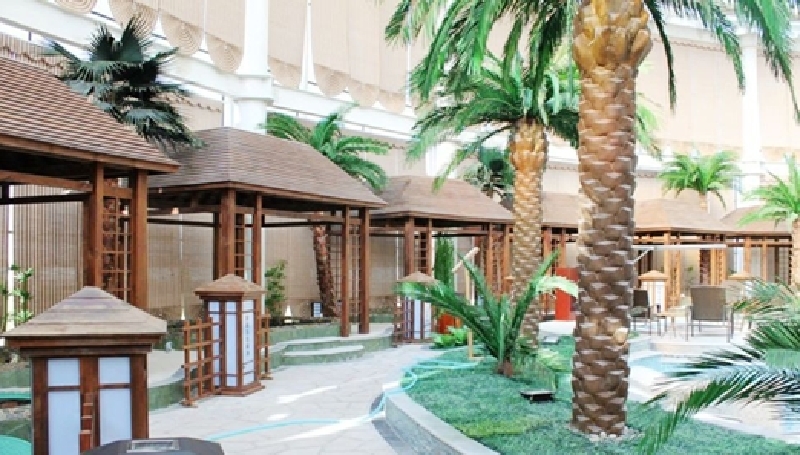 温泉区室内面积2800平方米,室外面积达56000平方米,室内外共设有47个泡池。