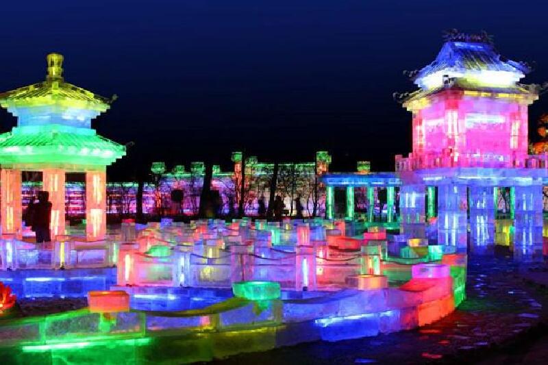 哈尔滨的兆麟公园冰灯游园会是冰城人受中国古老冰灯的启示在