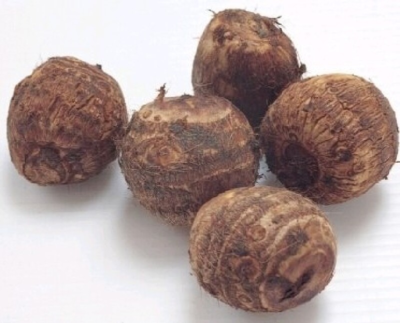 芋,它肉质细腻,具有特殊的风味。同时个头大,芋肉白色、质松软者品质上等。剖开芋头可见芋肉布满细小红筋,类似槟榔花纹,栽培学称之为槟榔芋。各地均有栽种。母芋椭圆形,子芋5个~8个。以产母芋为主,一般单个重1000~1500克,大的可达2500克。而且营养丰富,含有粗蛋白、淀粉、多种维生素、较高的钙和无机盐等多种成份,具有补气养肾、健脾胃、强身健体之功效,既是制作饮食点心、佳肴的上乘原料,又是滋补身体的营养佳品。