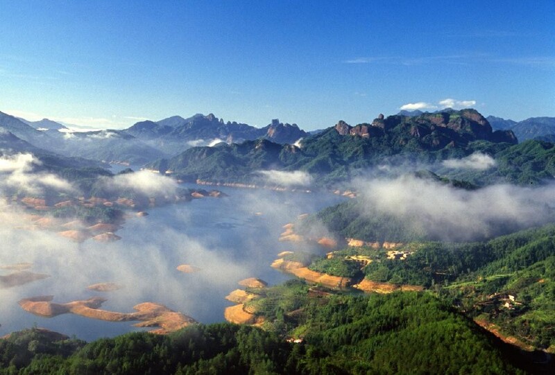 闽中山水奇秀在武夷山,而武夷山的精魂都浓缩在了九曲溪上了。九曲溪,顾名思义,溪流折为九曲,非常的形象。有一首诗形象的描绘了九曲溪的美丽轮廓,“溪流九曲泻云液,山光倒浸清涟漪。”九曲溪的每一道弯曲都韵味十足,展示了它风姿绰约,曲曲折折一共绵延了大概15华里。
