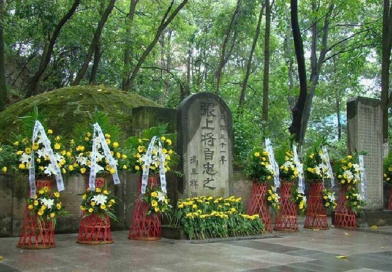 追封为陆军上将,在延安举行了隆重的追掉会,受到了高度评价。张自忠上将墓依山而建,呈半圆形,墓高约3米,园内庄严肃穆,供民众瞻仰悼念。