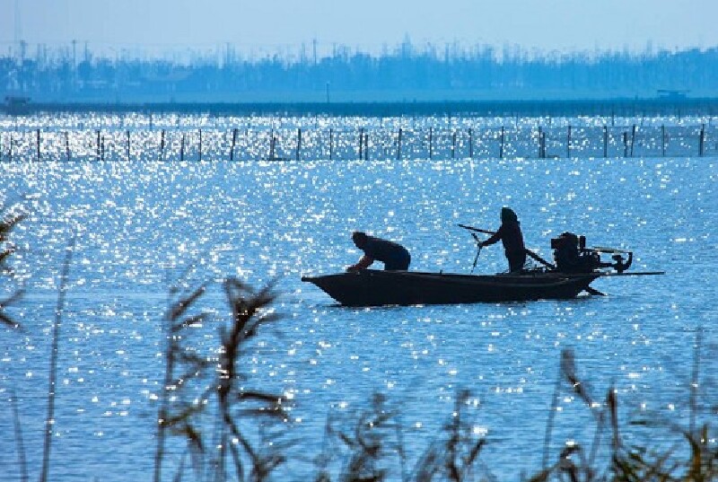 在沪宁高速上从阳澄湖北出口出来,将车停在相石路旁,然后从陆路换走水路,路旁的码头上停泊的等着接送客人的白色快艇。坐上快艇,穿行在蜿蜒的水道中,感受两岸的芦苇发出的沙沙沙的响声,抬头就能看到白鹭从头顶飞过,这样的意境很是美妙。