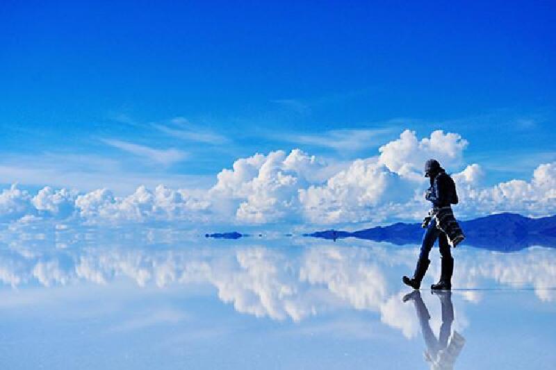 米,长150公里,宽130公里,面积9065平方公里,是世界上最大的盐层覆盖的荒原,边缘有盐场。盐场是一望无际的白色的世界,所以得名“天空之境”。玻利维亚乌尤尼拥有世界上最大的盐沼,一望无际的白色世界吸引了全球各地的游客慕名而言。每年7