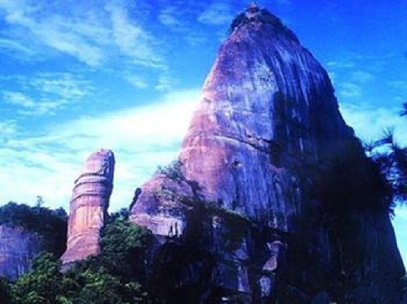 阳元石,远远看到阳元石便会让游客们一议论纷纷,在刚进入山之时就会有“雄峰初露”的标志,然后便可以见到传说中的阳元石,具体它的神秘之处还是等你到了现场在感受一下吧。这是男性的石头,还有造型酷似睡美人的山---坤元山。看到这些你都不敢相信它们都是纯天然的,没有任何人工的修饰。喜欢冒险的人可以去体验一下云崖栈道,这是人工开凿出来的,几乎是笔直的,一次只能够容纳一个人,当然顶端的风景也会是最美的。去阳元山,一定要带点它的特色石头回去,比如说五彩石,不仅仅是形状颜色的原因,传说是女娲补天时留下来的哦。阳元山与丹霞山的联票共70