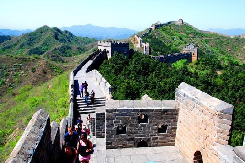 :位于河北滦平县与北京密云县的交界处,长约30公里。金山岭长城的天桥和望京楼是万里长城中最险要的一段,金山岭长城的东段有16个敌楼,从第14个城楼往上开始进入最险要的地段,第14至15个敌楼之间的长城称为天梯,第15至16个敌楼之间的长城称为天桥,是最险要的一段,长城南侧都是悬崖峭壁,长城只有一堵墙,上部只有30公分宽,第15个城楼称为“仙女楼”,第16个城楼叫“望京楼”,是此段长城最高的一个城楼。这一段长城的修复与其它地方的区别是修旧如旧,被联合国教科文组织确定为“世界极珍品”特级文物。在此处,金山岭长城天梯高耸入云端,天桥悬挂云海间,雄伟壮观。碧霞山风景区