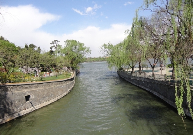 不彰显着皇家气派。公园以中国古代神话中的太液池、蓬莱山、方丈山和瀛洲山为基础而布局。树木葱茏,草木葳蕤,湖光山色,塔影静静,仿若仙山云雾缭绕,如入佳境。