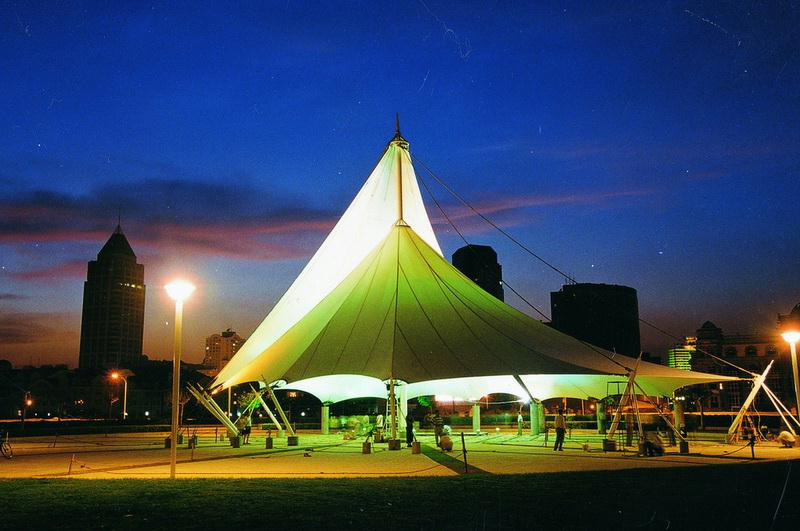 音乐广场,是国内最大的音乐休闲广场之一,由树阵区、偏心广场及软雕塑区、椭圆广场区、音乐观海台及地下购物商场组成。中心建有软体雕塑“音乐之帆”,帆下设仿真钢琴,供游人弹奏娱乐。