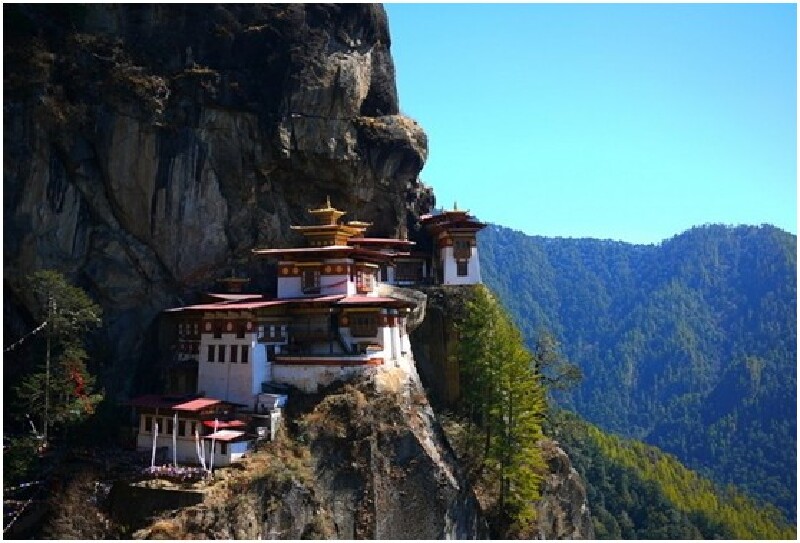 在不丹国内最神圣的佛教寺庙就属虎穴寺了,它也是世界十大超级寺庙之一。虎穴寺坐落在Paro山谷中3000英尺高的悬崖壁上。在民间流传了一个这样的传说,传说第二位佛也就是莲花生大师骑着虎飞过此地,曾在一处山洞中打坐冥想,那地方就是现在的虎穴寺,这故事让该风水宝地成为佛教的教化之地。