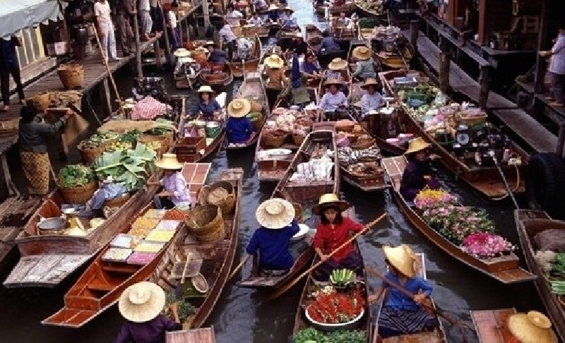 中国的集市想必大家都司空见惯,十分熟悉,在泰国呢,有一种集市叫做水上市场。大多数去泰国旅游的外国游客都要划船目睹一下泰国水上市场的风采。