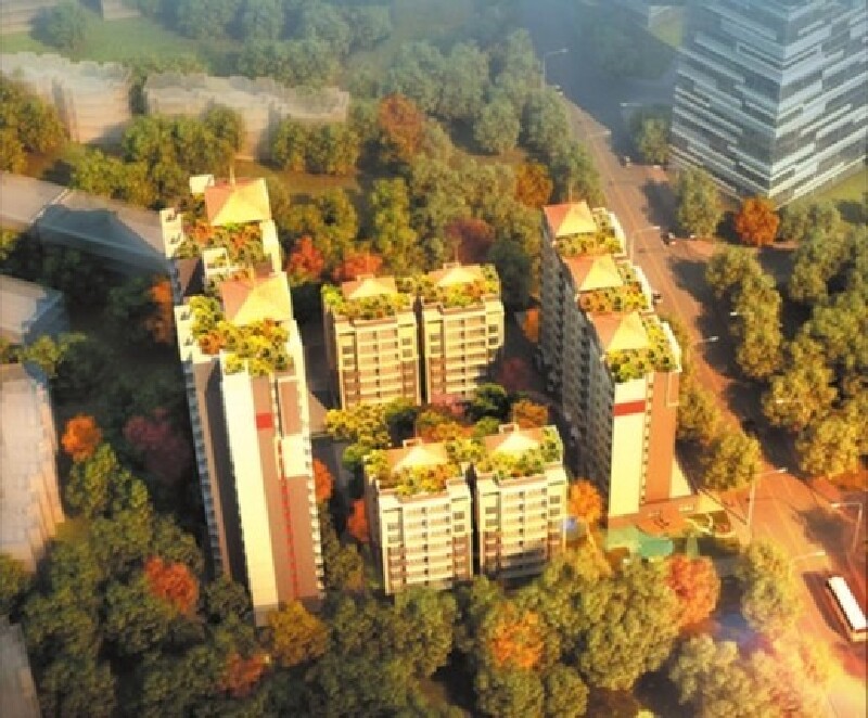 南亚未来城分为两个地块,一期“梵谷森林”项目用地位于龙庆路和刘家营村北侧,建筑设计为南偏东朝向,点式布局组团依次排布;二期“提香合院”项目用地位于龙庆路和白龙路交汇处,采用纯正板式建筑布列,建筑之间没有遮挡。