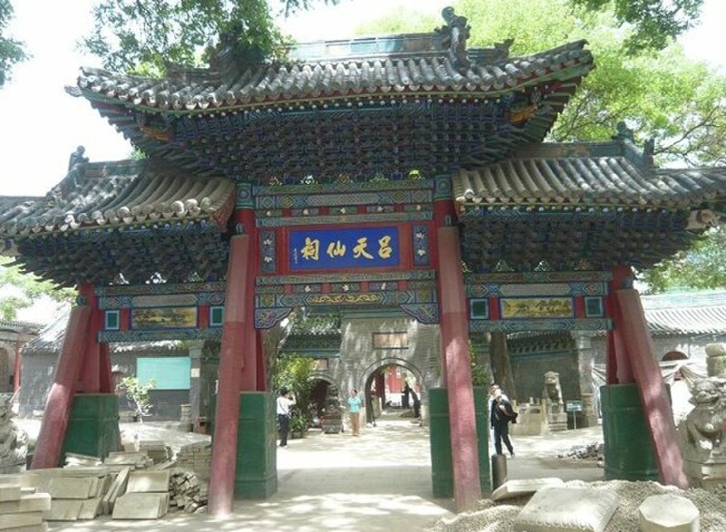 纯阳宫的建筑蕴含着一个“回”字:三祖殿建成正方形,四面再出以正方形回廊,两口为回,也为吕,似乎也隐喻着吕洞宾之意,而吕祖又常以“回道人”自称,佛家道家又常劝人“回头是岸”,渡化世人,救济苍生,这一出院落之构造真可谓别出心裁。有诗曾赞:“殿楼相间势嵯峨,白鹤几度翔烟波。闹市净土开道化,云中又闻洞仙歌。”