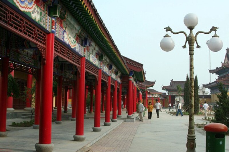 1.2万平方米的广场正中央便是是一面九龙壁,九龙壁后面便是是喷泉放生池,池前竖立着高灯,据说在晚上高灯的灯光还可以照亮整个寺院和周围的村庄。