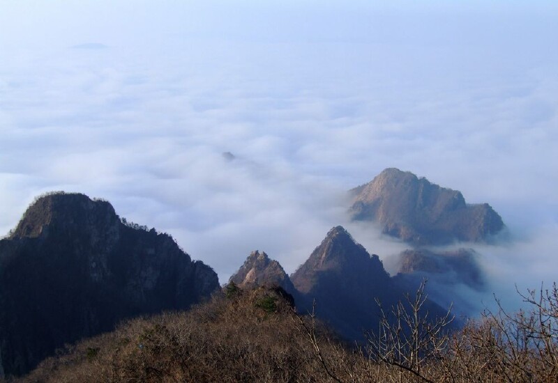 3.最佳的登山时节是夏秋,夏天水汽充沛、枝繁叶茂,如果不是晴天很多时候山上云雾缭绕;秋季温度适宜,天朗气清,十一左右枫叶就红了。
