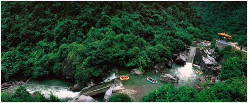 大觉山位于江西省抚州市资溪县境内,属于国家4A级景区,大觉山峡谷漂流长3.6公里、落差188米,在两岸青山绿树的环抱中激流勇进,惊险刺激的漂流过程中还能欣赏到不少自然美景,途经一峪、三弯、六潭、九瀑等景点。