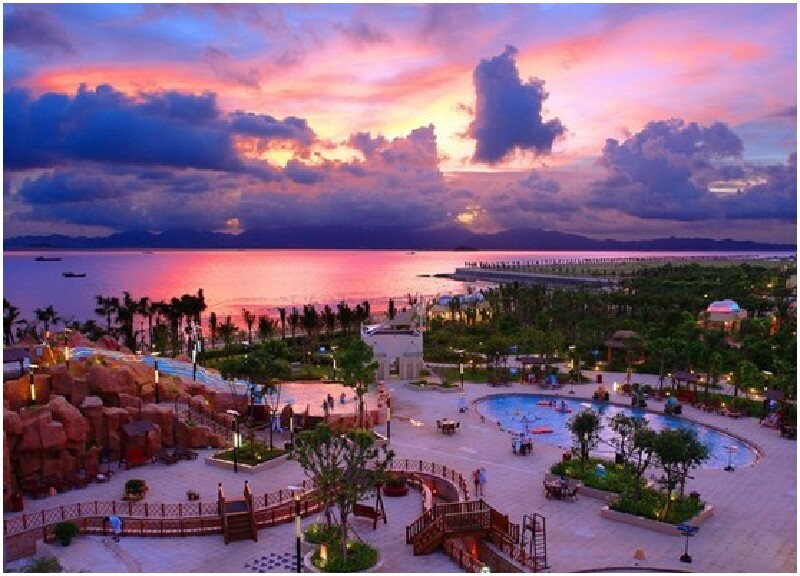 海泉湾大酒店位于度假城的中轴线上,周围分别是渔人码头、游乐园、温泉别墅群和广阔的南海。所有的景点既融为一体,又保持着自己独有的特色。