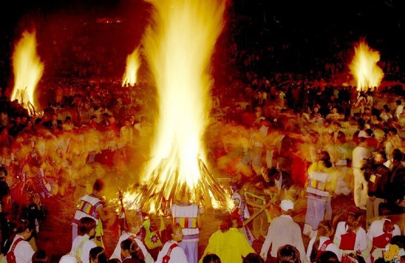 如今去呈贡县,最有意思的是民族村。如果你是在夏历六月二十四日前后去民族村,还会邂逅热闹非凡的火把节。关于火把节的传说,简单说来,是因为天神震怒,派了大量的蝗虫和螟虫啃食庄稼,在那一日,人们都点起火把去田里烧虫,于是这日,便被定为火把节。经历几千年的文化沉淀,火把节的形式已经非常丰富了,主要活动有斗牛、斗羊、斗鸡、赛马、摔跤、歌舞表演和选美等,可以说是当地人民最特色的狂欢节,而这样的狂欢则会持续两到三天,在这两三天里,游客们能够亲身体验狂欢节的热闹氛围。