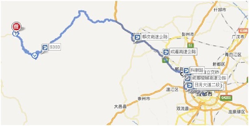 驾车至成都绕城高速路,然后在犀浦镇立交桥处进入成灌高速路,往成都市西北方向,沿成灌高速公路行驶