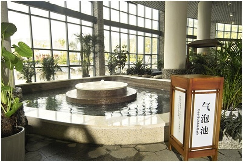 39个温泉池,假山流水、花草树木,山与水、花与草的交相辉映,水汽朦胧中别有一番韵味。按功能不同,温泉池分为本草、香薰、至尊、理疗、原味、休闲六个泡汤区。特色的温泉鱼疗深受大众的喜爱,躺在遍布小鱼的池中,享受着小鱼的亲吻,不但让你感到浑身惬意,更重要的是它能啄食人身上的老化肌肤,对去角质、疤痕等都有显著功效。还有牛奶花瓣浴、太空舱理疗机、至尊汤屋等,游客们可以尽情享受温泉带来的畅快体验。