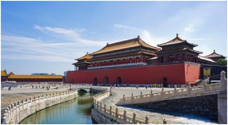 紫禁城的主要大门,放眼望去,城墙、城楼,黄色的琉璃瓦,汉白玉的栏杆,宏伟庄严,令人肃然起敬。