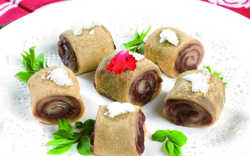 驴打滚,是经典的老北京小吃之一。它是用水和上黄米面后蒸熟而成,然后抹上赤豆沙和白糖即可。驴打滚很糯软香甜,还有浓浓的黄豆香。