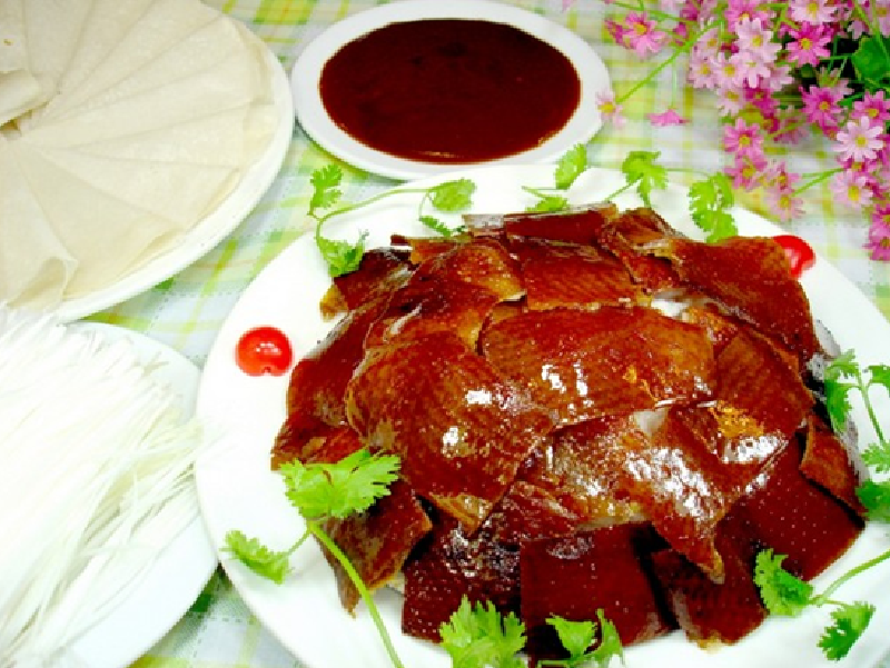 说到北京美食,不能不提北京烤鸭。全聚德的烤鸭是最有名和最正宗的。全聚德烤鸭,于1864年开始营业,是著名的老字号商铺。全聚德烤鸭以北京填鸭、荷叶饼和空心芝麻烧饼为原料,辅之以甜面酱、葱、黄瓜、糖和蒜泥。全聚德在北京的和平门、王府井、奥运村等都有店面。
